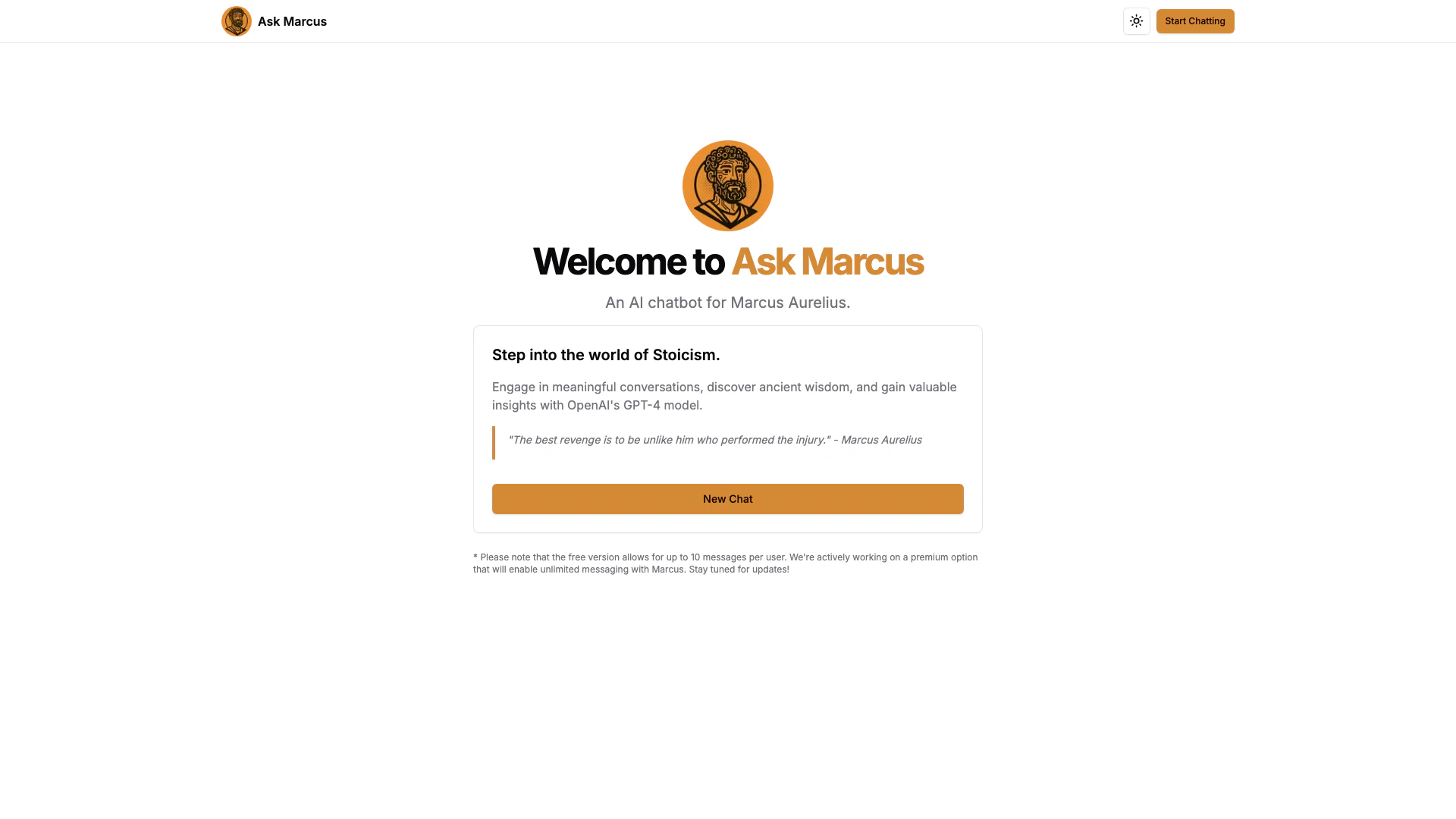 - Erhalten Sie Antworten vom Chatbot, die die Weisheit von Marcus Aurelius widerspiegeln.