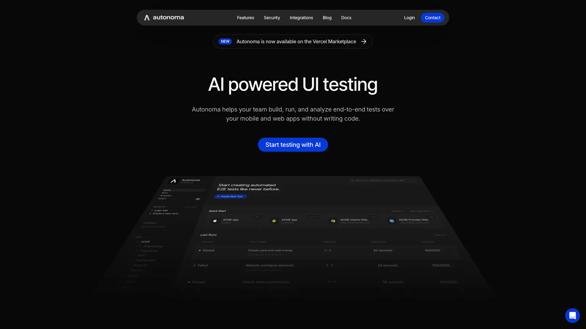 Autonoma hilft Ihrem Team, End-to-End-Tests für Ihre mobilen und Web-Apps zu erstellen, auszuführen und zu analysieren, ohne Code zu schreiben.