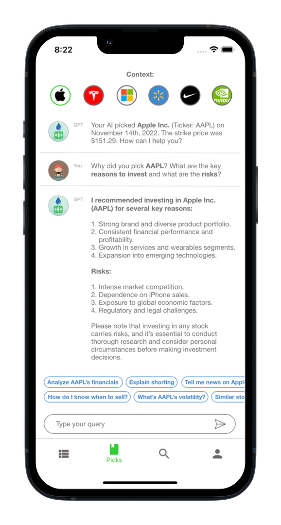 Candlestick AI ist für Privatanleger konzipiert, die ihren Investitionsprozess vereinfachen und KI-Technologie nutzen möchten, um ihre Entscheidungsfindung zu verbessern. Es richtet sich sowohl an unerfahrene Anleger, die traditionelle Investitionen überwältigend finden könnten, als auch an erfahrene Anleger, die ihre Strategien mit KI-Einblicken optimieren möchten. Egal, ob die Benutzer ihre Investitionen aktiv verwalten oder einen passiven Ansatz bevorzugen, Candlestick bietet die notwendigen Werkzeuge, um im Aktienmarkt erfolgreich zu sein.