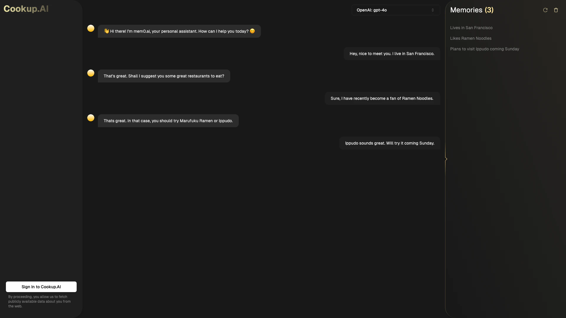 - Beginnen Sie, mit Cookup Ai zu interagieren, indem Sie Fragen stellen oder Unterstützung bei verschiedenen Aufgaben anfordern.