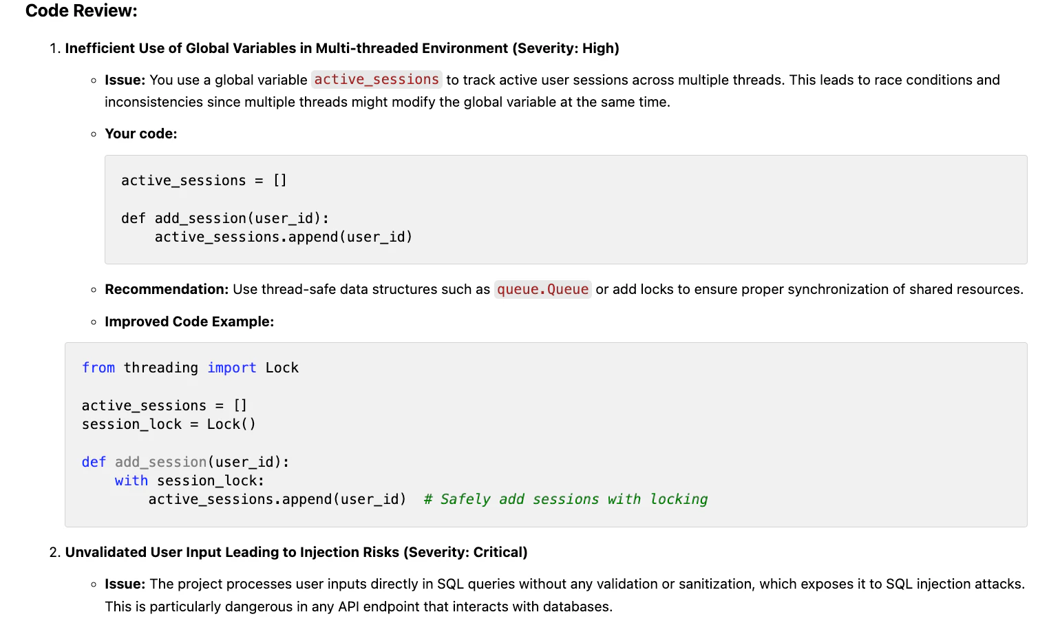 - KI-gestützte Codeüberprüfungen: Erhalten Sie detailliertes Feedback zu Ihrem Code von einer Experten-KI, die hilft, Fehler zu identifizieren und die Gesamtqualität zu verbessern.