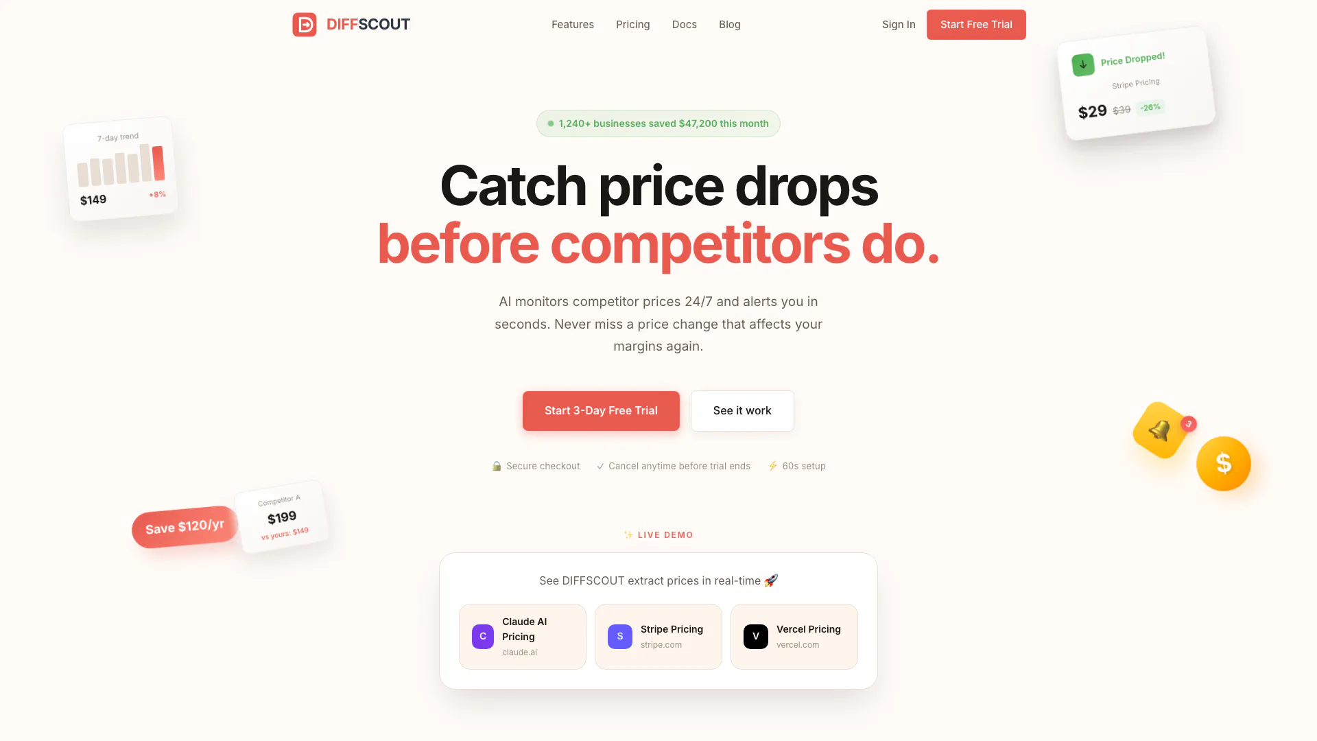 DIFFSCOUT ist ein KI-gestütztes Preisüberwachungstool, das Unternehmen hilft, Preisänderungen von Wettbewerbern in Echtzeit zu verfolgen. Es spezialisiert sich auf die Überwachung von Preisen auf verschiedenen Plattformen wie Amazon, Stripe und SaaS-Preisseiten. Mit DIFFSCOUT erhalten Benutzer sofortige Benachrichtigungen über Preissenkungen, die es ihnen ermöglichen, schnell auf Marktveränderungen zu reagieren. Im Gegensatz zu herkömmlichen Web-Scrapern verwendet DIFFSCOUT fortschrittliche KI-Technologie, um Preisinformationen genau zu extrahieren, ohne dass eine ständige Wartung erforderlich ist, was es zu einer zuverlässigen Lösung für Unternehmen macht, die wettbewerbsfähig bleiben möchten.