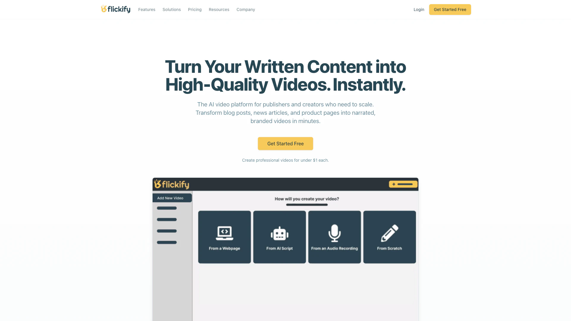 - Kosten-Effektive Lösung: Mit Kosten von unter 1 Dollar pro Video bietet Flickify eine budgetfreundliche Alternative zur traditionellen Videoproduktion, die teuer sein kann.