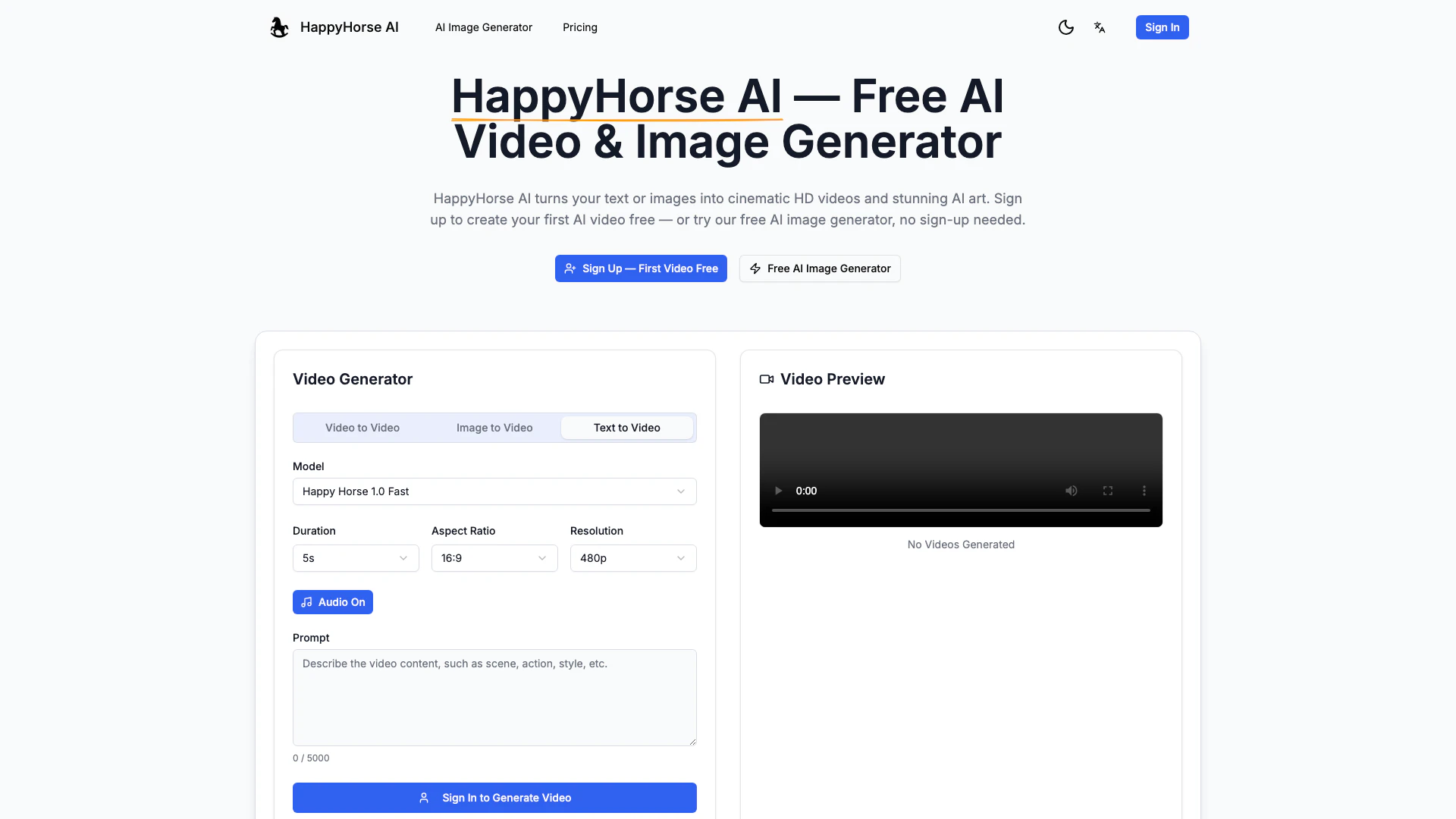 HappyHorse AI ist ein Tool, das es Benutzern ermöglicht, sofort beeindruckende KI-Videos und -Bilder zu erstellen.