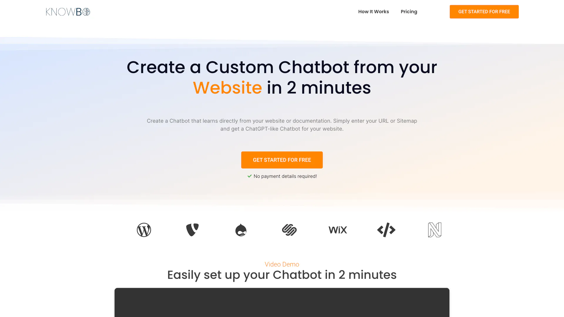 - Schneller Einrichtungsprozess: Knowbo ermöglicht es Benutzern, in nur 2 Minuten einen benutzerdefinierten Chatbot zu erstellen, indem sie einfach die URL ihrer Website oder Sitemap eingeben.