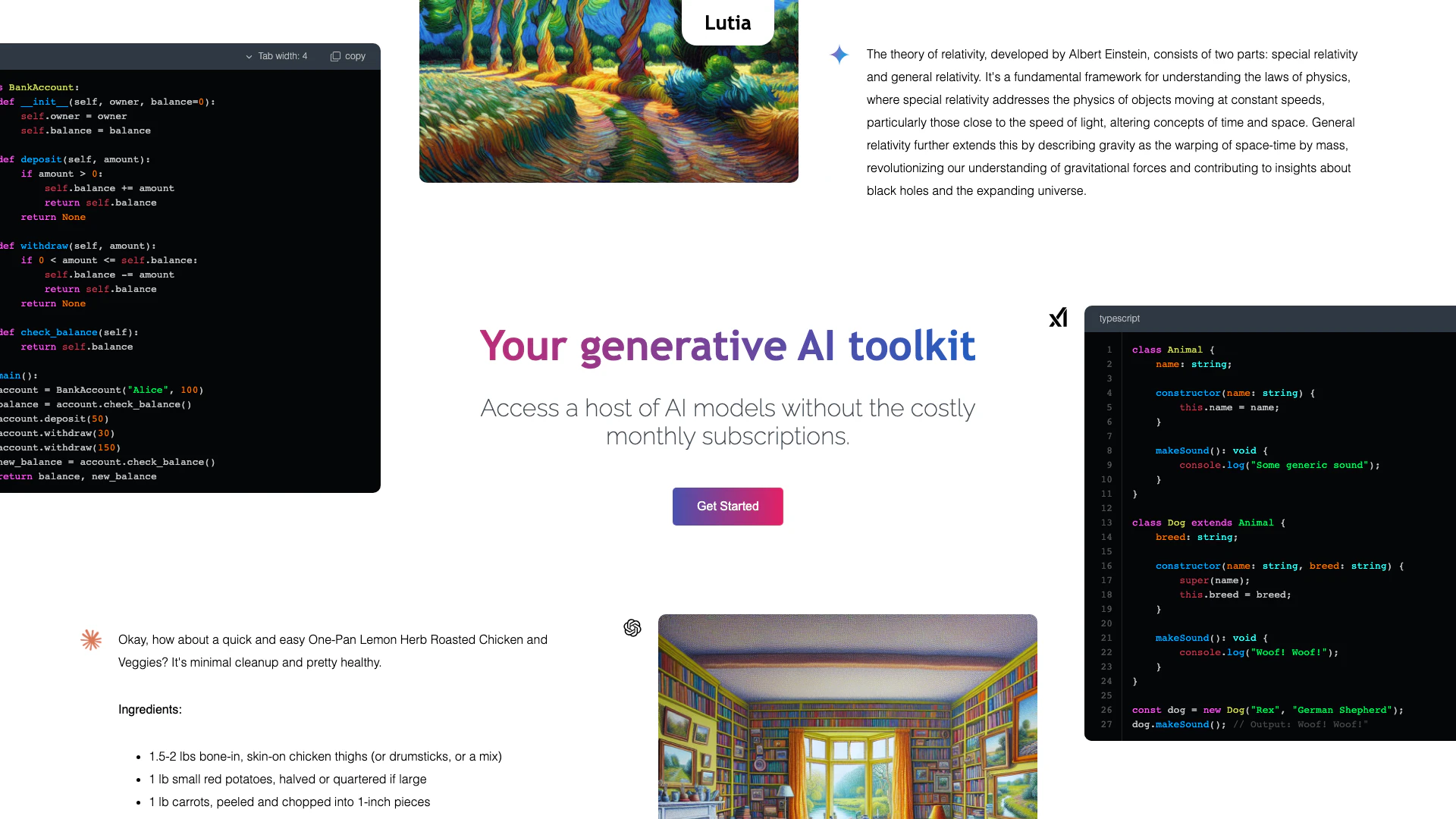 - Zugang zu mehreren KI-Modellen: Lutiaai ermöglicht es den Benutzern, von einem einzigen Chatfenster aus auf eine Vielzahl führender generativer KI-Modelle zuzugreifen, was die Produktivität steigert.
