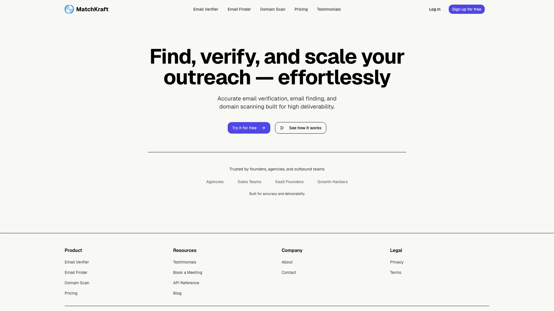 Matchkraft ist ein umfassendes Tool zur E-Mail-Verifizierung und -Suche, das entwickelt wurde, um die E-Mail-Zustellbarkeit und die Effizienz der Kontaktaufnahme zu verbessern. Es ist für Benutzer konzipiert, die eine genaue E-Mail-Verifizierung, Domänenanalyse und effektive E-Mail-Suchfunktionen benötigen. Matchkraft wird von einer Vielzahl von Benutzern, einschließlich Gründern, Agenturen und Vertriebsteams, vertraut, die auf seine Präzision angewiesen sind, um sicherzustellen, dass ihre Kommunikationsbemühungen die beabsichtigten Empfänger erreichen. Die Plattform konzentriert sich darauf, qualitativ hochwertige Ergebnisse zu liefern, die erfolgreiche Kontaktstrategien erleichtern.
