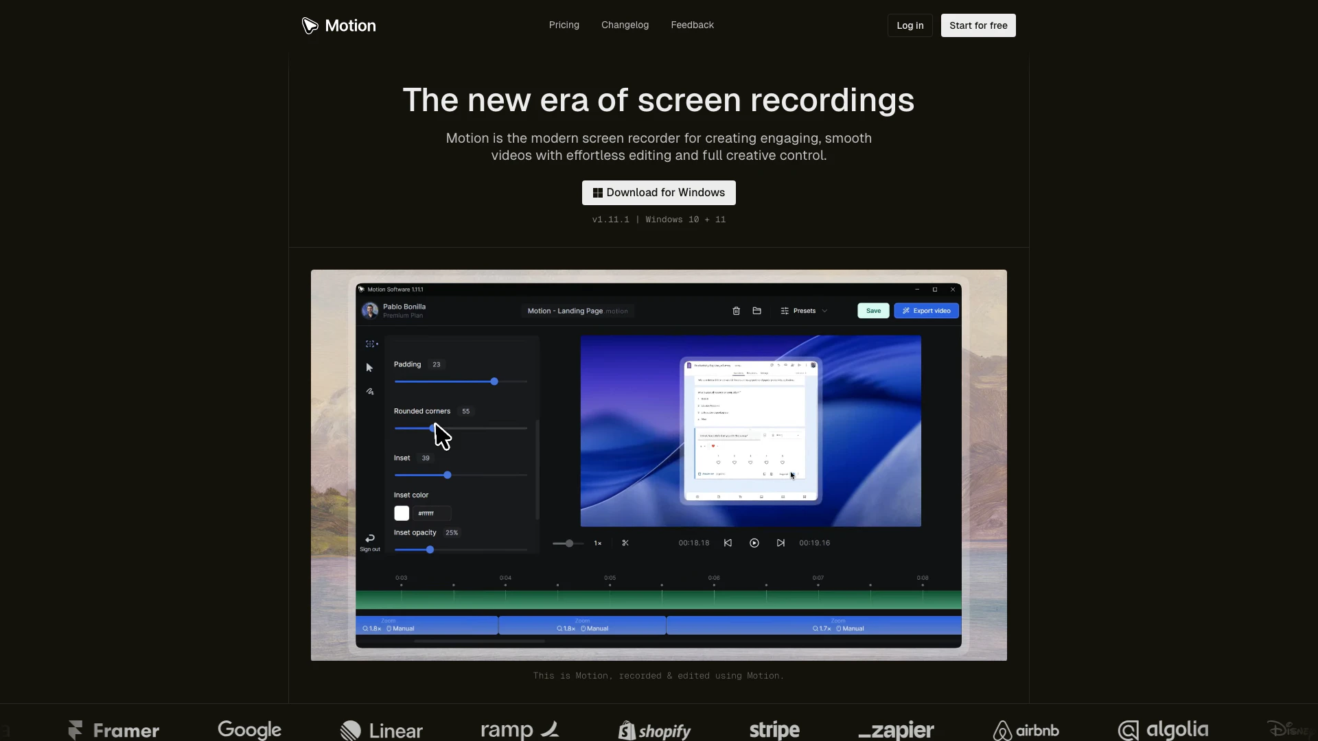 Motion ist ein moderner Bildschirmrekorder und Video-Editor für Windows, der wunderschöne, flüssige Videos mit müheloser Bearbeitung und voller kreativer Kontrolle erstellt. Er verarbeitet Ihre Aufnahmen und kümmert sich automatisch um alle Animationen.