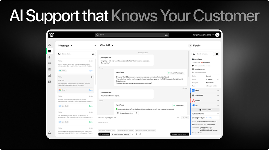 - Multikanal-Support: PandaChat bietet Unterstützung über mehrere Kanäle, einschließlich Live-Chat, E-Mail, soziale Medien und Sprache, sodass Unternehmen mit Kunden überall interagieren können.