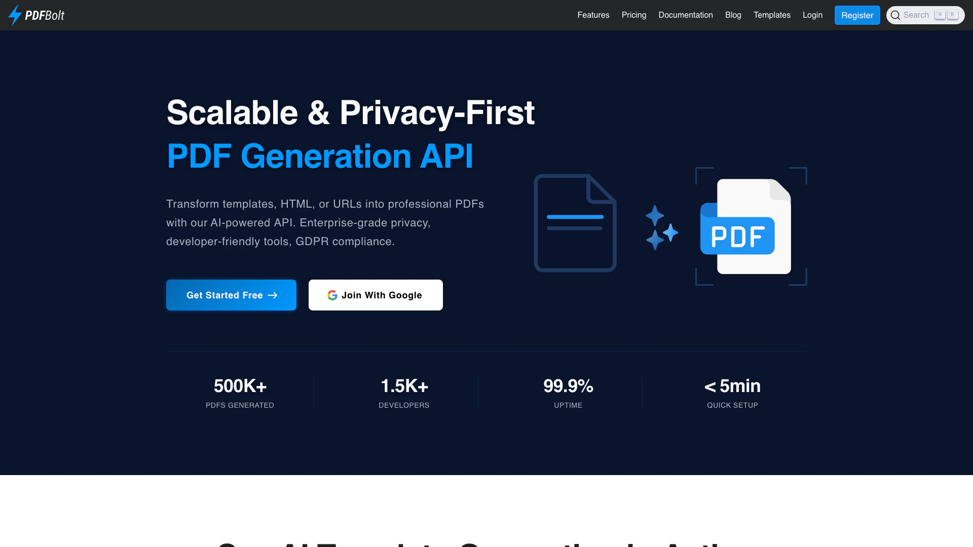 PDFBolt ist eine sichere, skalierbare und entwicklerfreundliche API zur PDF-Generierung, die Vorlagen, HTML oder URLs in professionelle PDF-Dokumente umwandelt. Sie nutzt KI-gestützte Vorlagen für eine einfache Anpassung und gewährleistet eine hohe Zuverlässigkeit mit einer Verfügbarkeitsgarantie von 99,9 %. Im Einklang mit der DSGVO legt PDFBolt großen Wert auf Datenschutz und Sicherheit, was es zu einer idealen Wahl für Unternehmen macht, die ihre PDF-Generierungsprozesse automatisieren möchten.