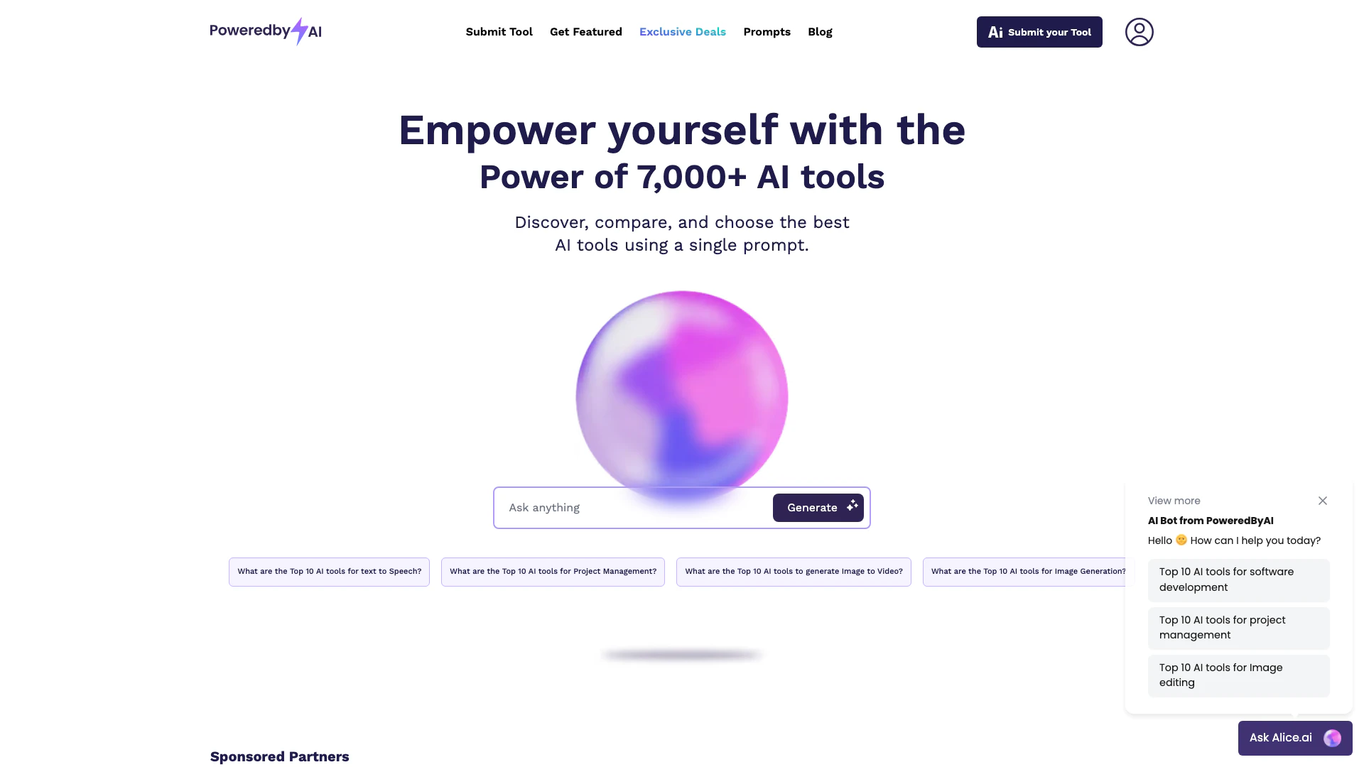 - Umfangreiches Tool-Verzeichnis: PoweredbyAI bietet Zugang zu einem umfangreichen Verzeichnis von über 7.000 KI-Tools, was es den Nutzern erleichtert, verschiedene Optionen zu entdecken und zu vergleichen.