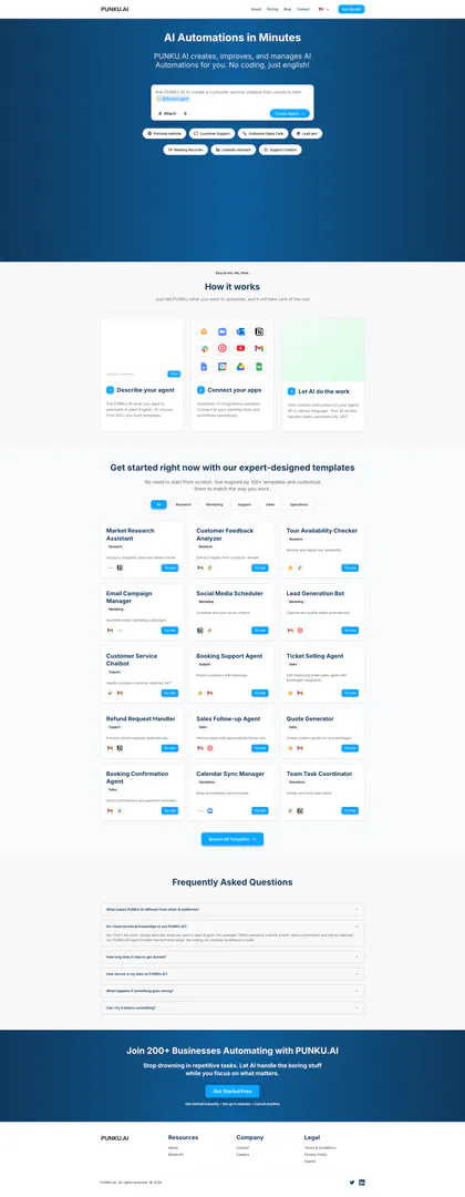 - Keine Codierung erforderlich: PUNKU.AI ermöglicht es den Benutzern, Automatisierungen mit einfachem Englisch zu erstellen, wodurch die Notwendigkeit von Programmierkenntnissen entfällt.