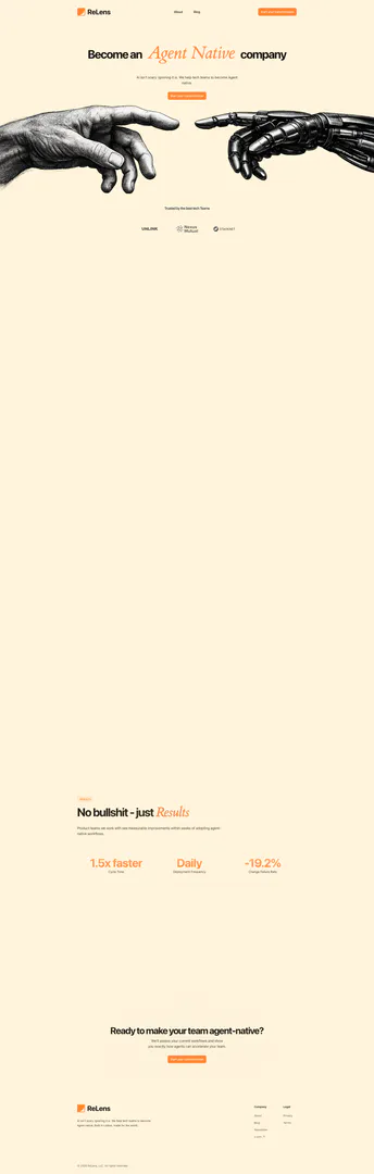 ReLensai ist ein innovatives KI-Tool, das darauf abzielt, Tech-Teams in agent-native Entwickler zu verwandeln. Es positioniert sich als Lösung für Organisationen, die KI in ihren Entwicklungsprozessen nutzen möchten. Durch den Fokus auf Orchestrierung anstelle traditioneller Codierungsmethoden ermöglicht ReLensai Teams, Funktionen häufiger und effizienter bereitzustellen und fördert eine Kultur der kontinuierlichen Verbesserung. Das Tool betont die Bedeutung der Anpassung an KI-Technologien und behauptet, dass, während KI einschüchternd erscheinen mag, das Ignorieren ein größeres Risiko für Entwicklungsteams darstellt.