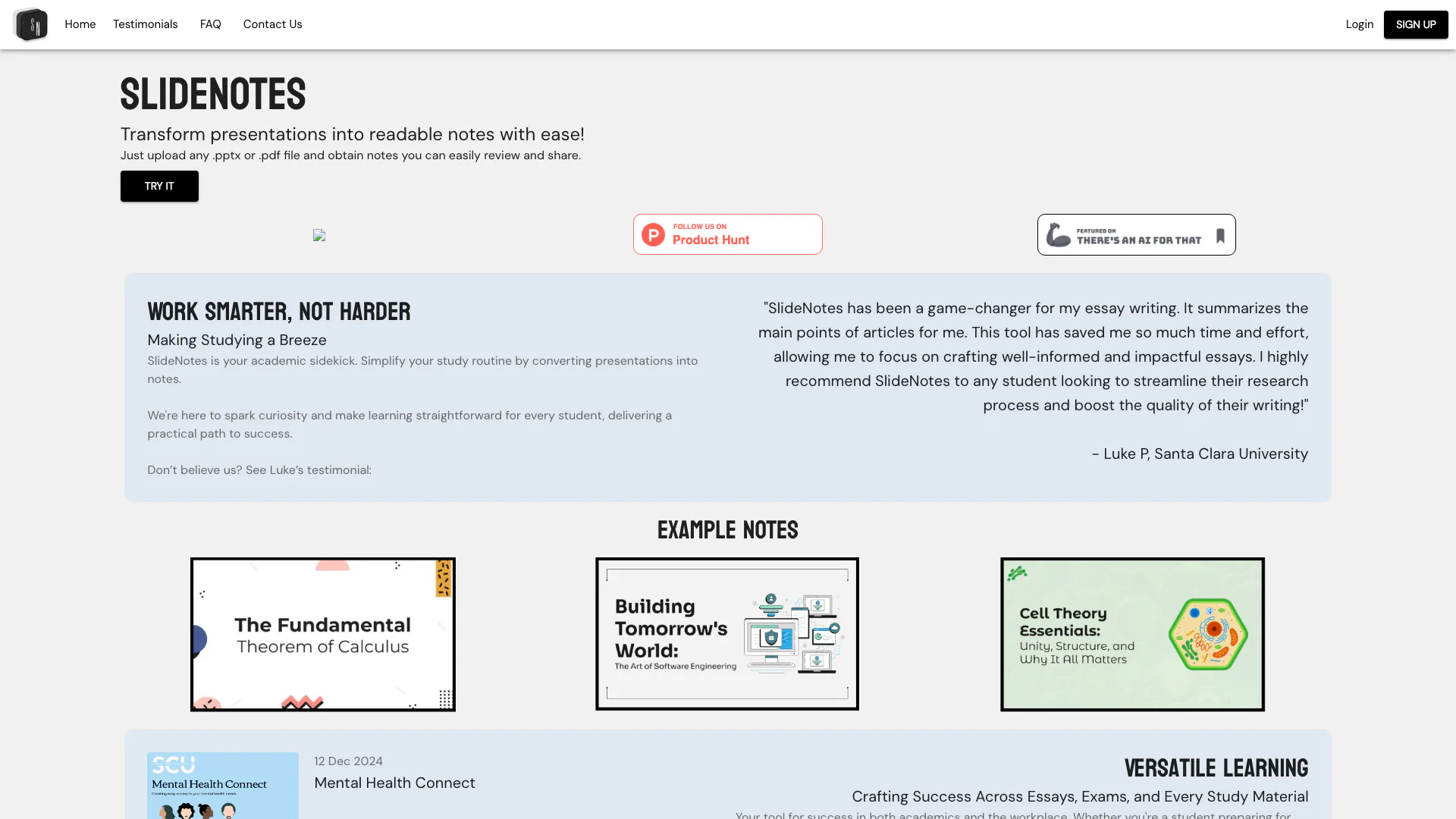 - Zeitersparnis: Durch die Zusammenfassung der wichtigsten Punkte spart SlideNotes den Benutzern Zeit und Aufwand bei der Notenerstellung und beim Lernen.
