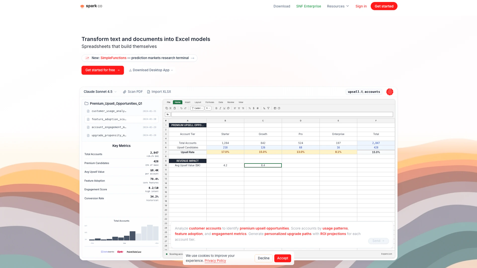 - Intelligente Tabellenkalkulationsautomatisierung: Sparkcoai automatisiert die Erstellung von Tabellenkalkulationen mit KI, sodass Benutzer komplexe Analysen ohne manuelles Schreiben von Formeln erstellen können.