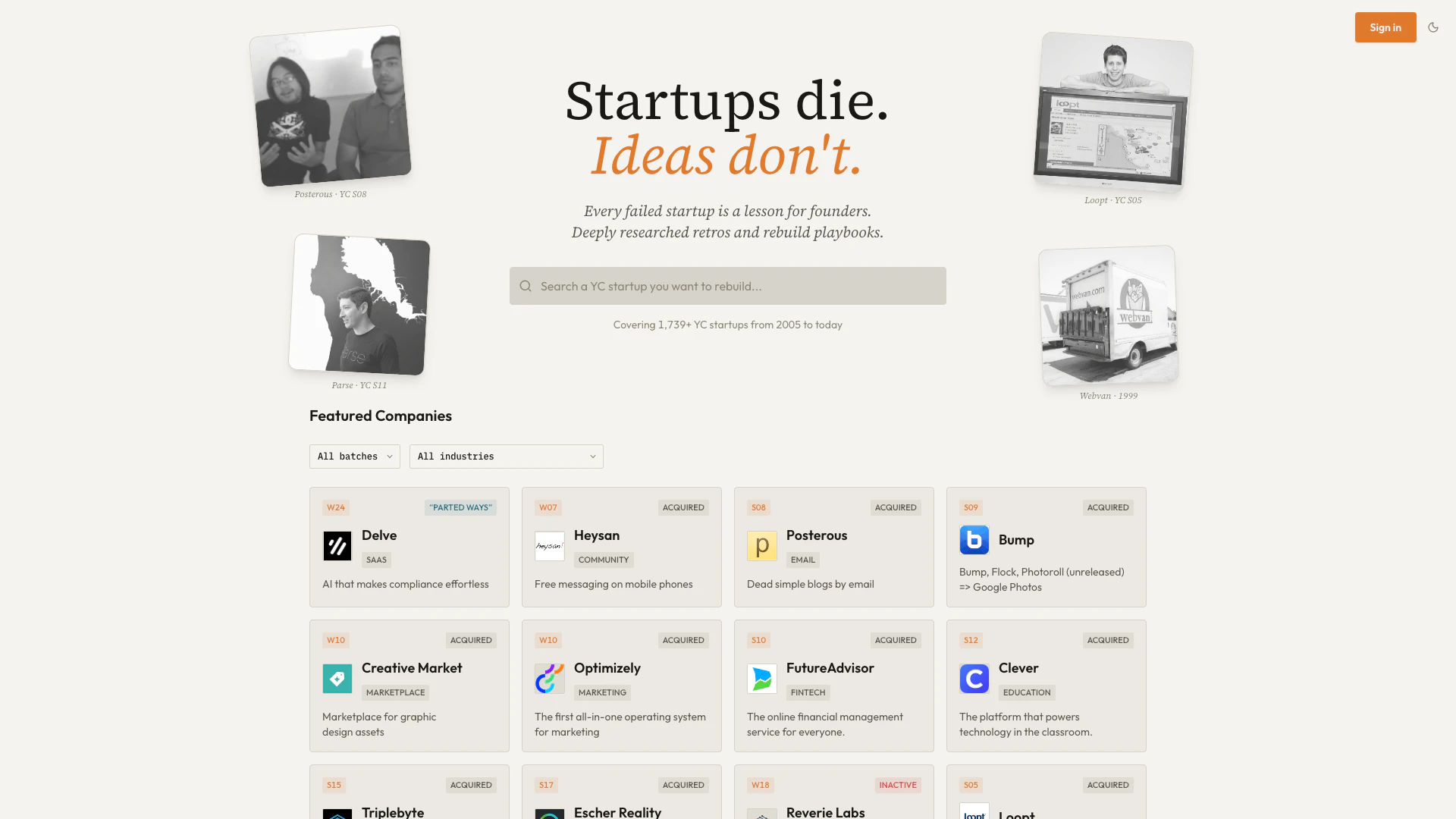 - Detaillierte Analyse und Lernen: Jeder Startup-Eintrag enthält eine Nachanalyse und einen schrittweisen Wiederaufbauplan, der es den Benutzern ermöglicht, aus vergangenen Erfolgen und Misserfolgen zu lernen.
