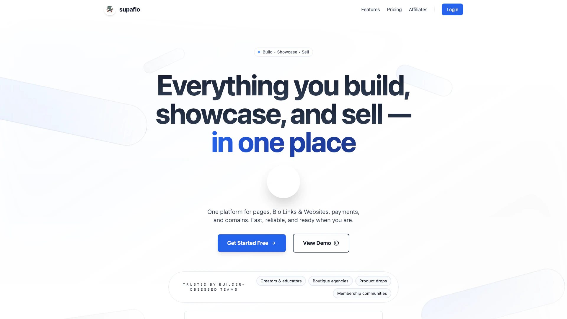 Supaflo ist ideal für Kreatoren, Pädagogen, Boutique-Agenturen und Mitgliedschaftsgemeinschaften, die nach einer kostengünstigen und effizienten Möglichkeit suchen, Verkaufsfunnels und Online-Präsenzen aufzubauen. Es richtet sich an Unternehmer, die ihre Verkaufsprozesse ohne die Komplexität und hohen Kosten traditioneller Funnel-Builder optimieren möchten.