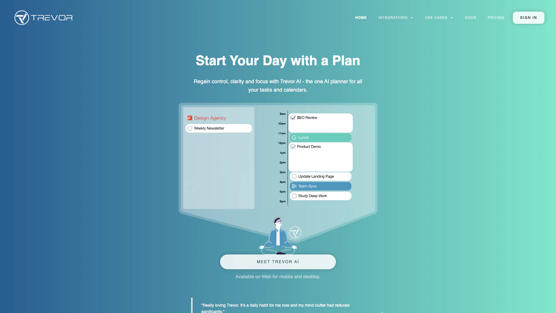 - Tägliche Produktivität: Unternehmer und Freiberufler können Trevor AI nutzen, um tägliche Aufgaben zu priorisieren und Kundenbesprechungen effektiv zu verwalten.