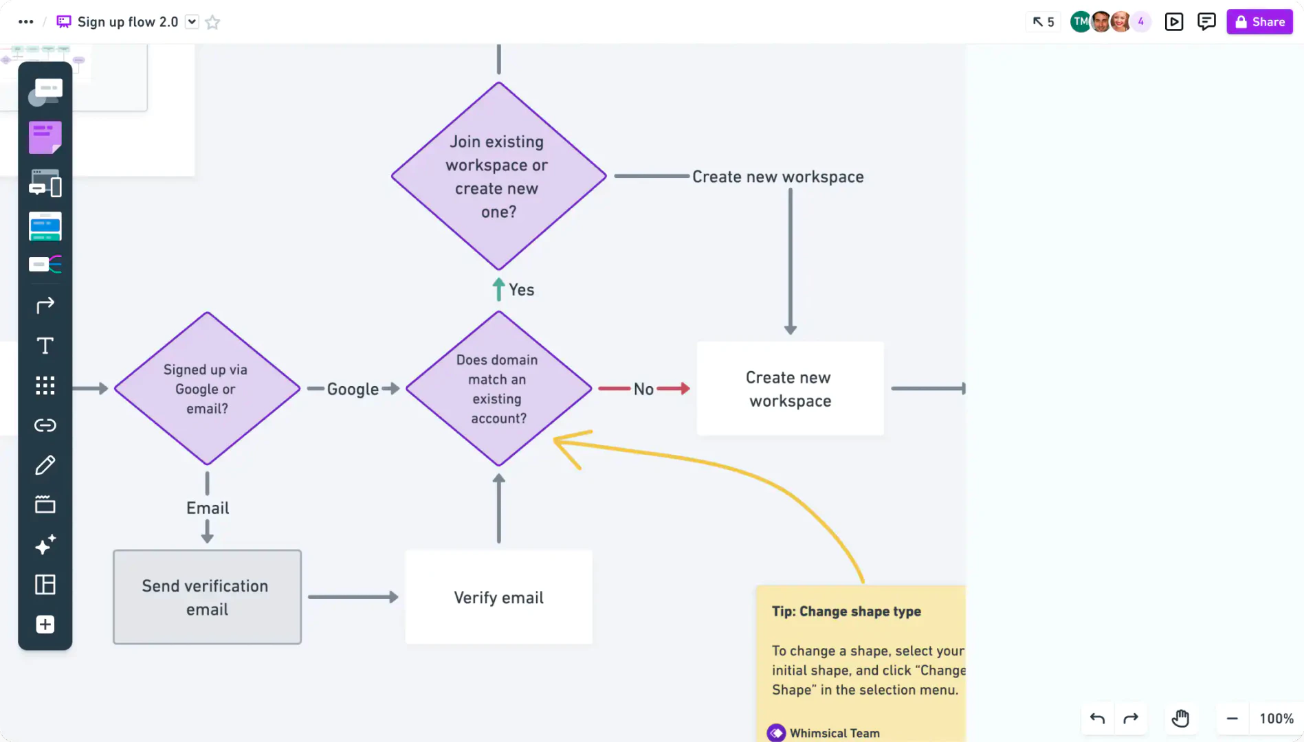 Whimsical ist eine kollaborative Whiteboard-App, die für Denken und Planen entwickelt wurde. Sie ermöglicht es den Nutzern, Flussdiagramme, Mind Maps, Wireframes und mehr zu erstellen.