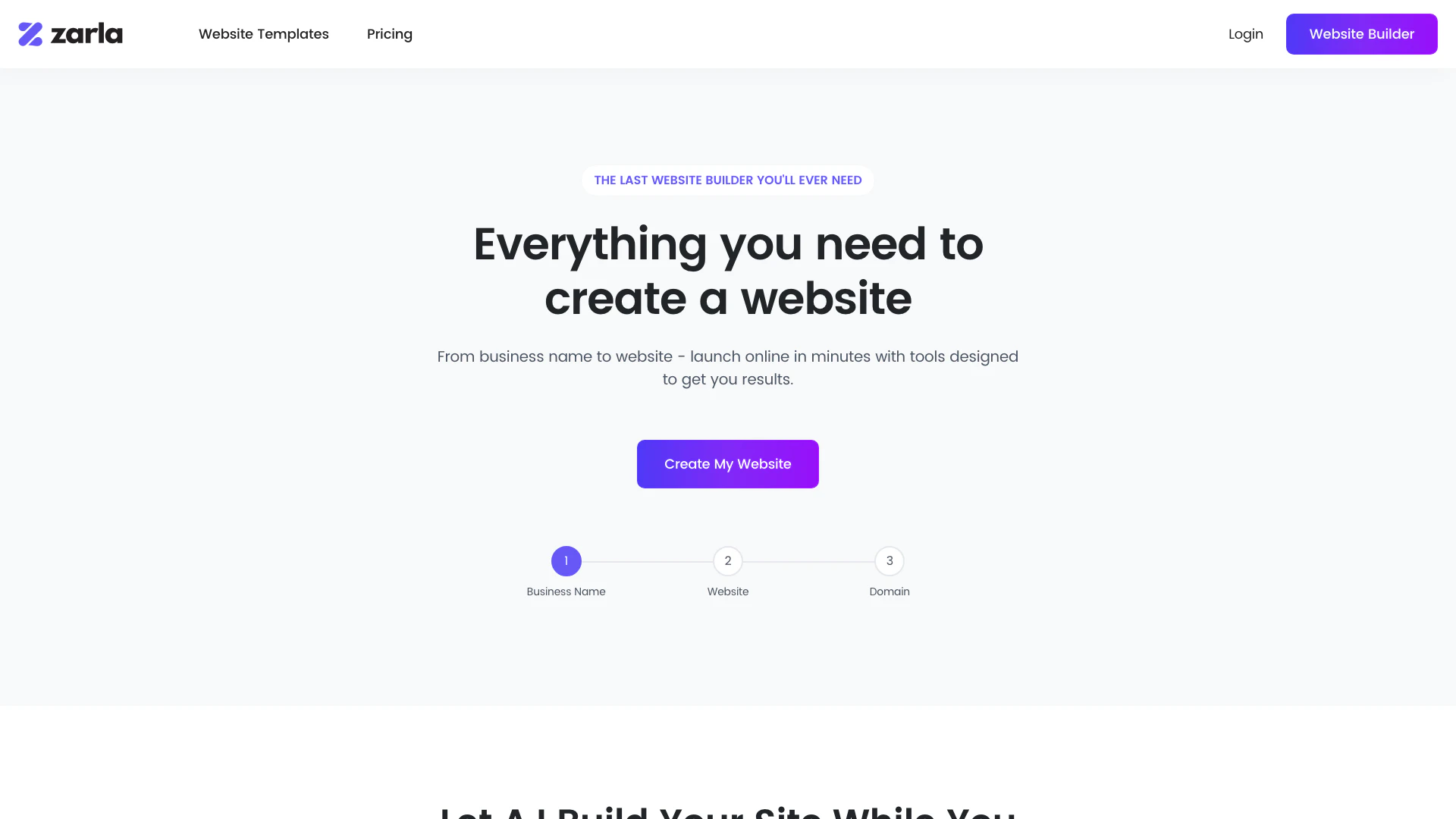 - Einfache Website-Erstellung: Zarla ermöglicht es Benutzern, schnell eine professionelle Website zu erstellen, indem sie einige Fragen beantworten, was es für Kleinunternehmer zugänglich macht.
