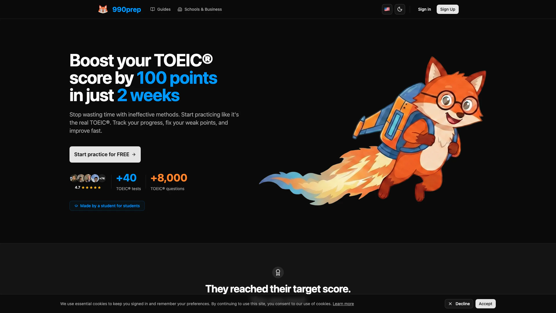 990prep está diseñado para estudiantes que se preparan para el examen TOEIC, particularmente aquellos que desean mejorar sus puntajes de manera eficiente. Es ideal para individuos que pueden haber tenido dificultades con métodos de estudio tradicionales y buscan un enfoque más efectivo para dominar el examen TOEIC. La plataforma está diseñada para aprendices de varios niveles de competencia, desde principiantes hasta estudiantes avanzados.