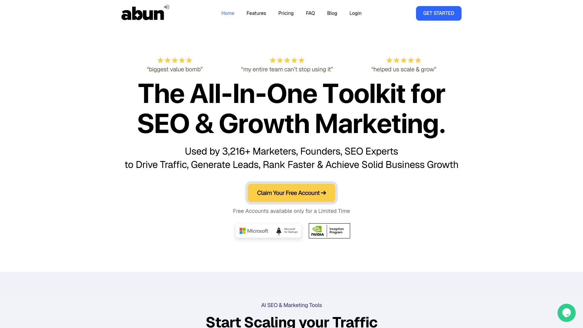 - Kit de herramientas SEO integral: Abun ofrece una amplia gama de herramientas para SEO y marketing de crecimiento, incluyendo artículos escritos por IA, investigación de palabras clave y indexación rápida, convirtiéndolo en una solución todo en uno.
