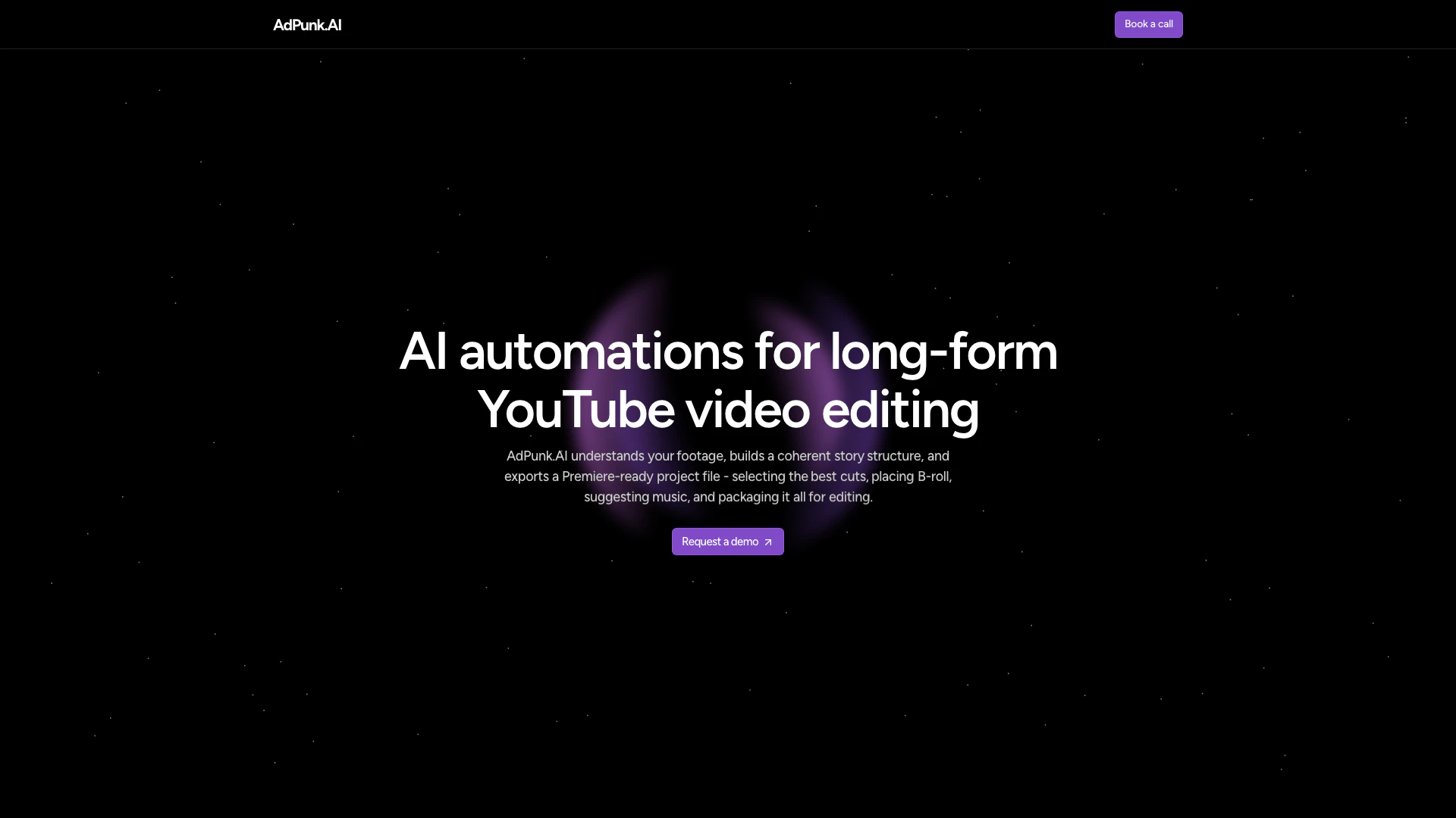 - Acelera el Proceso de Edición de Video: AdPunk.AI permite a los usuarios enviar videos de YouTube un 70% más rápido al automatizar el proceso de edición, reduciendo significativamente el tiempo de producción.