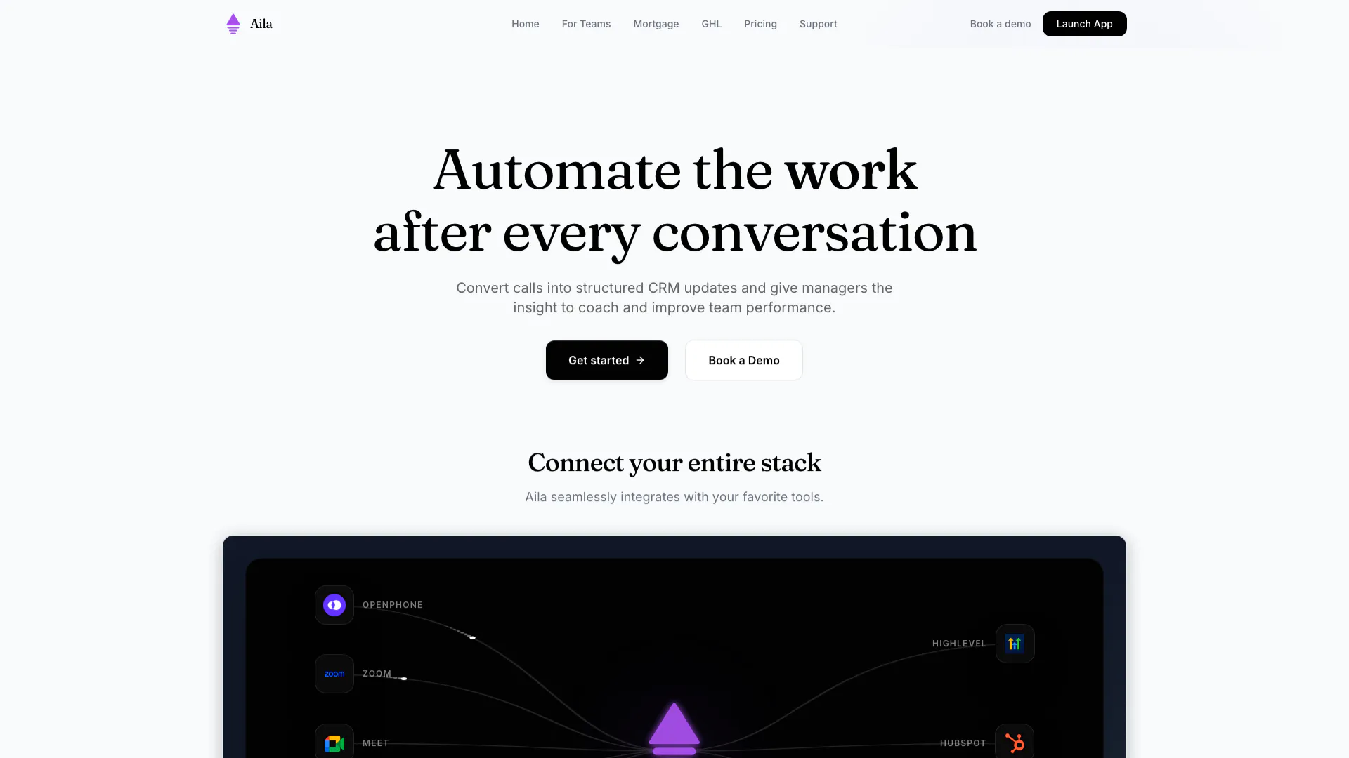 - Conectar tus herramientas: Integra Aila con tus plataformas de comunicación existentes como OpenPhone, Google Meet, Microsoft Teams o Zoom. Esto se puede hacer rápidamente y sin configuración técnica. 2. Realiza tus llamadas: Realiza tus llamadas de ventas como de costumbre. Aila opera en segundo plano, escuchando y aprendiendo de cada conversación. 3. Actualizaciones automáticas del CRM: Después de cada llamada, Aila actualiza automáticamente tu CRM con datos de negocios, seguimientos y notas relevantes, asegurando que toda la información se capture de manera precisa y oportuna.