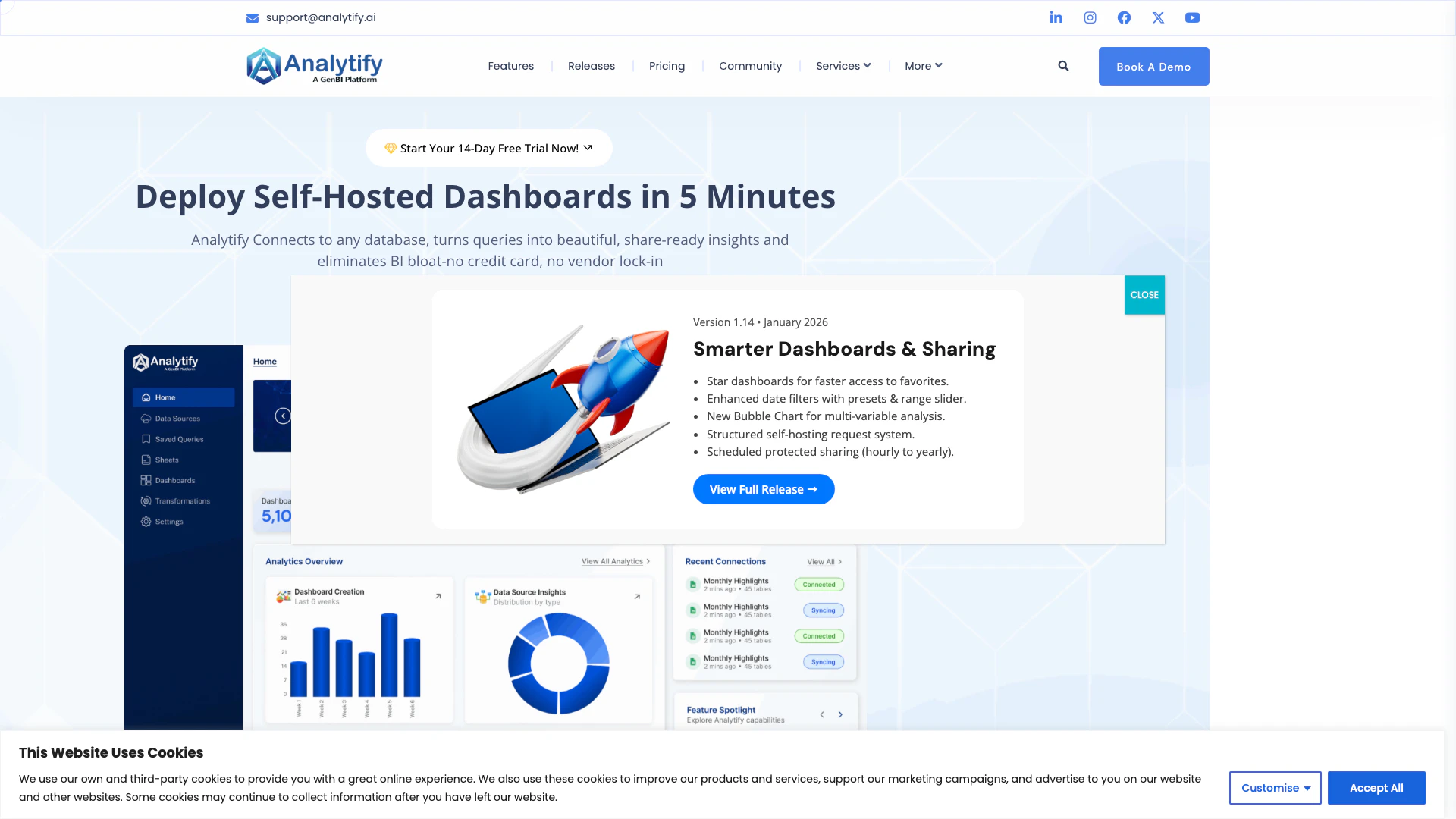 - Flexibilidad de Código Abierto: Como plataforma de código abierto, Analytify ofrece a los usuarios la flexibilidad de personalizar y autoalojar sus soluciones de BI, asegurando el control sobre sus datos.