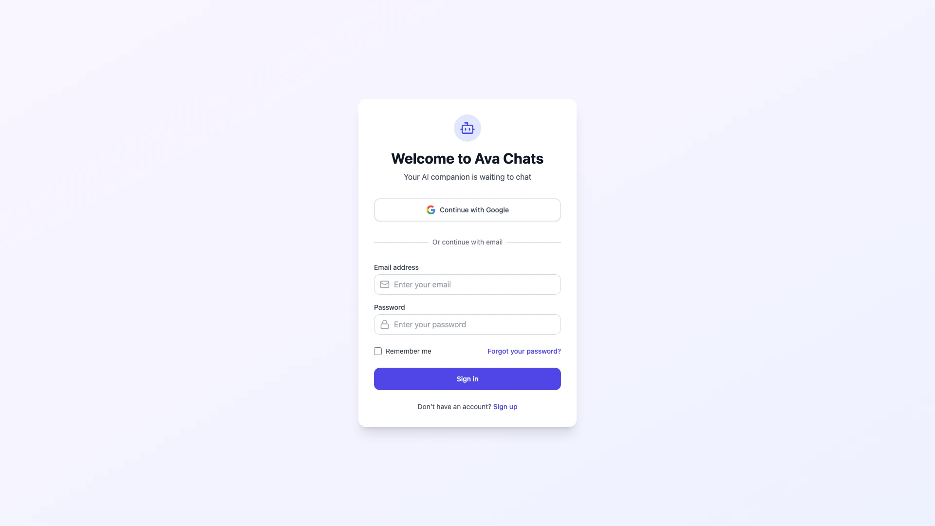 - Visita el sitio web de Ava Chats en https://avachats.app/. 2. Inicia sesión usando tu dirección de correo electrónico y contraseña. Si no tienes una cuenta, haz clic en 'Registrarse' para crear una. 3. Una vez que hayas iniciado sesión, puedes comenzar a chatear con el compañero de IA escribiendo tus mensajes en la interfaz de chat. 4. Explora diferentes temas y preguntas para ver cómo responde la IA, disfrutando de una experiencia de conversación fluida.
