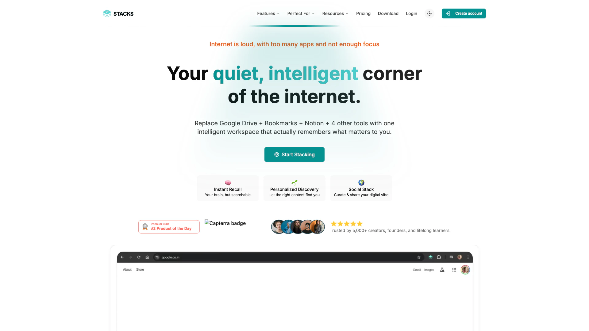 - Espacio de Trabajo Unificado: Stacks combina múltiples herramientas como Google Drive, Notion y marcadores en un único espacio de trabajo de IA, optimizando su flujo de trabajo.