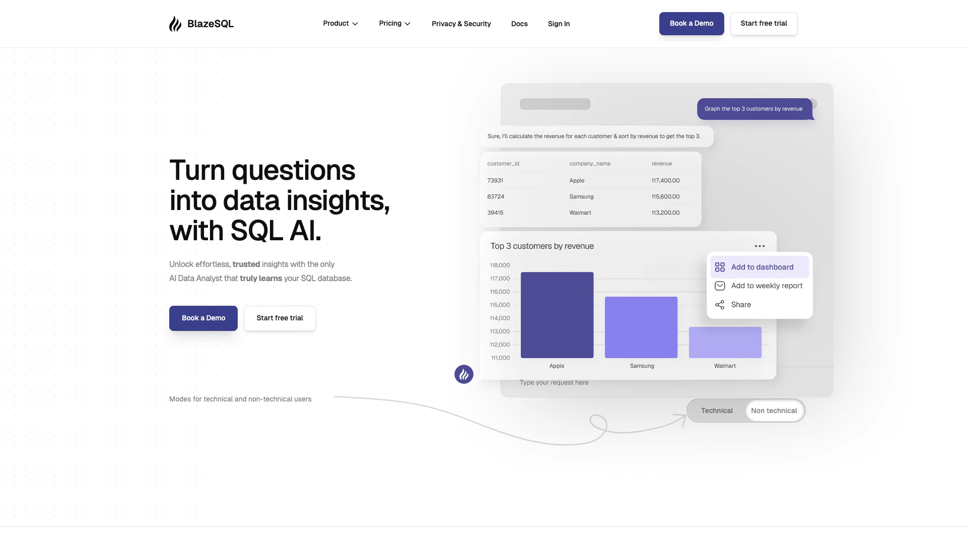 - Seguridad a Nivel Empresarial: BlazeSQL garantiza la privacidad de los datos al acceder solo a los metadatos y mantener los resultados de las consultas localmente en el dispositivo del usuario.