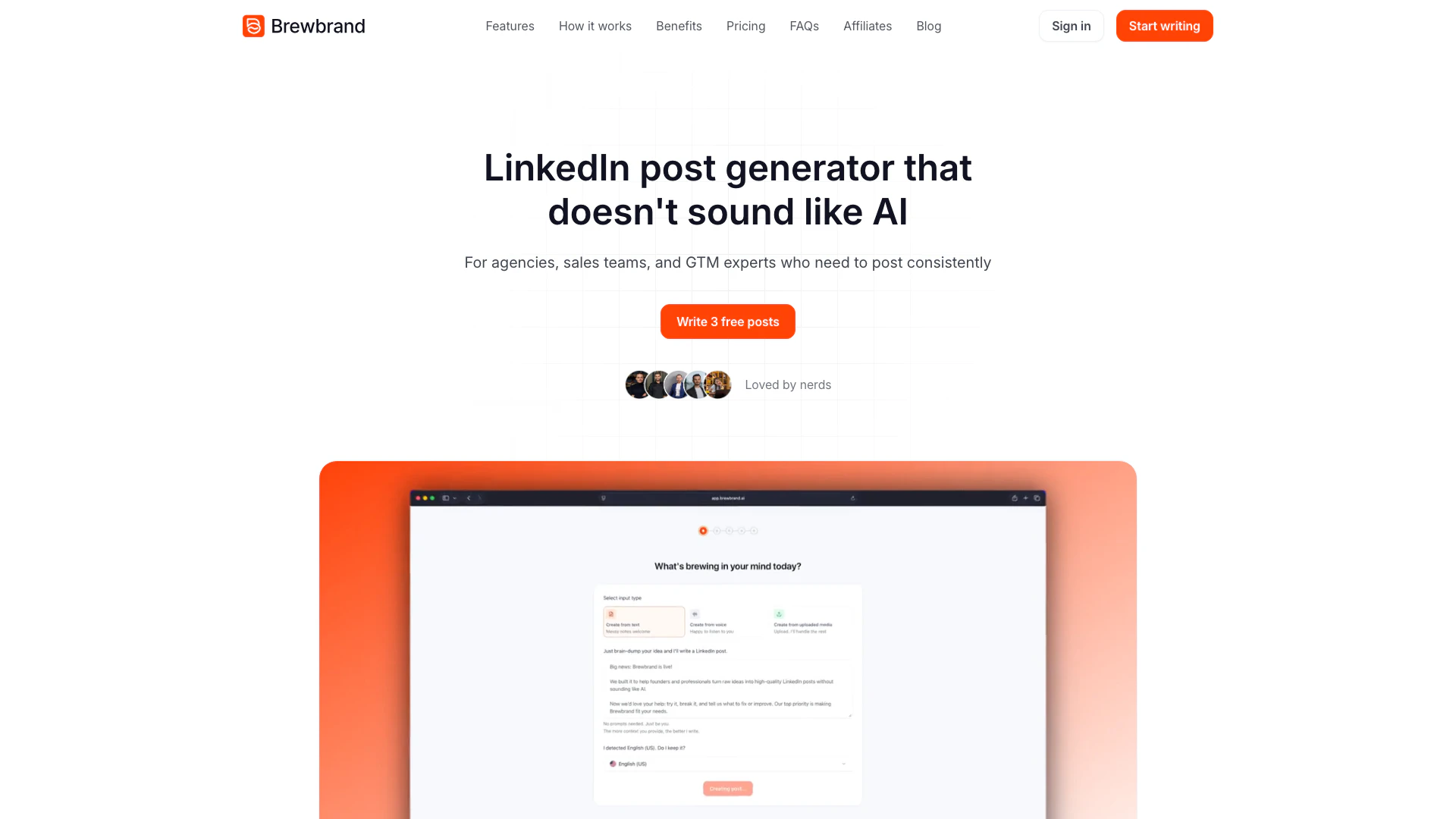 - Generación rápida de publicaciones: Brewbrandai puede crear publicaciones en LinkedIn en menos de dos minutos, reduciendo drásticamente el tiempo dedicado a la creación de contenido.