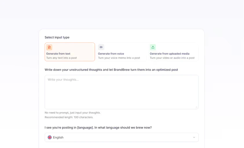 - Estructuras enfocadas en el compromiso: Utilizando técnicas de redacción probadas y principios psicolingüísticos, Brewbrandai elabora publicaciones diseñadas para atraer y resonar con tu audiencia.