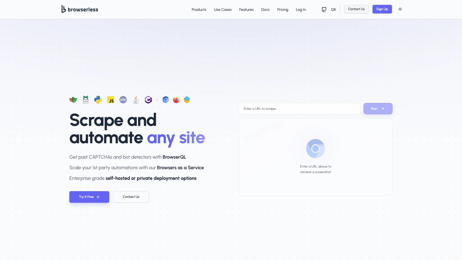 - Integración de API Flexible: Integra fácilmente Browserless con scripts existentes utilizando Puppeteer o Playwright, lo que permite una configuración y despliegue rápidos.