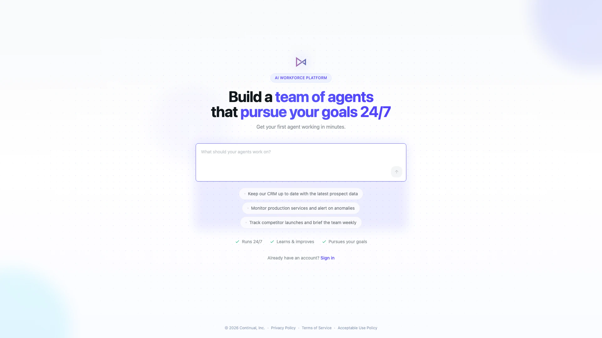 Continual es una plataforma de IA innovadora diseñada para implementar trabajadores de IA autónomos que operan 24/7 para lograr objetivos comerciales específicos. Esta herramienta permite a las empresas conectar diversas herramientas y establecer objetivos claros, permitiendo que la IA maneje la ejecución de manera autónoma. Al aprovechar Continual, las organizaciones pueden mejorar su eficiencia operativa e impulsar el crecimiento a través de la automatización inteligente y la optimización continua de las estrategias de marketing.