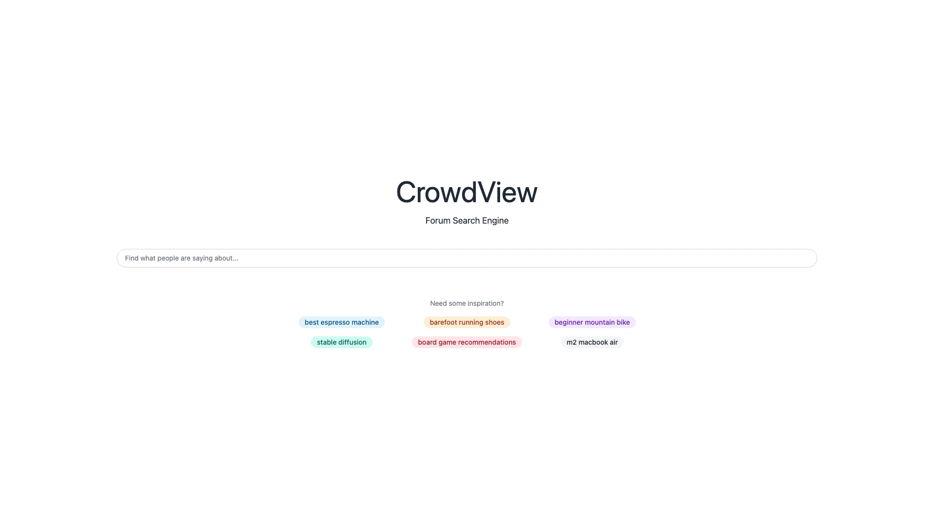 Crowdview es ideal para cualquier persona que busque recopilar información de discusiones comunitarias. Esto incluye a consumidores que buscan recomendaciones de productos, aficionados que buscan consejos en áreas específicas y investigadores que buscan comprender las opiniones públicas sobre varios temas. Atiende a una audiencia diversa, desde usuarios ocasionales hasta profesionales que necesitan información detallada.