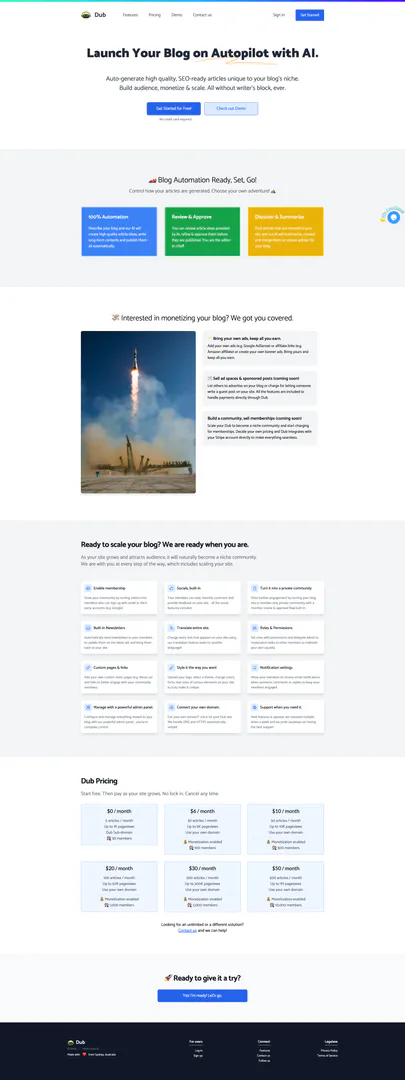 - Generación Automática de Artículos: Dub automatiza la creación de artículos de alta calidad listos para SEO, eliminando el bloqueo del escritor y agilizando la producción de contenido.