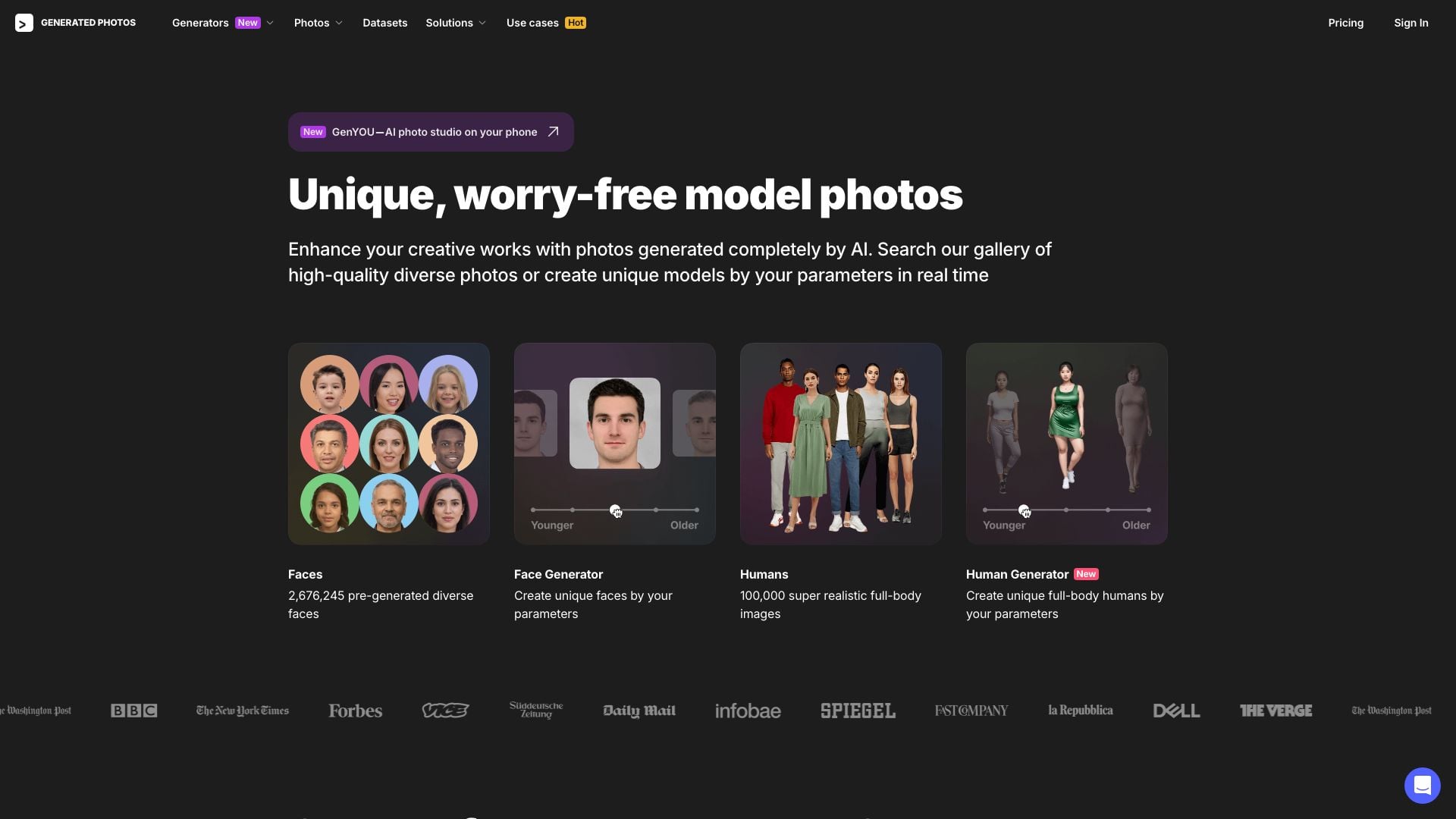 - Personalización en Tiempo Real: Los usuarios pueden crear rostros únicos y humanos de cuerpo completo definiendo sus parámetros en tiempo real utilizando las herramientas Generador de Rostros y Generador de Humanos.