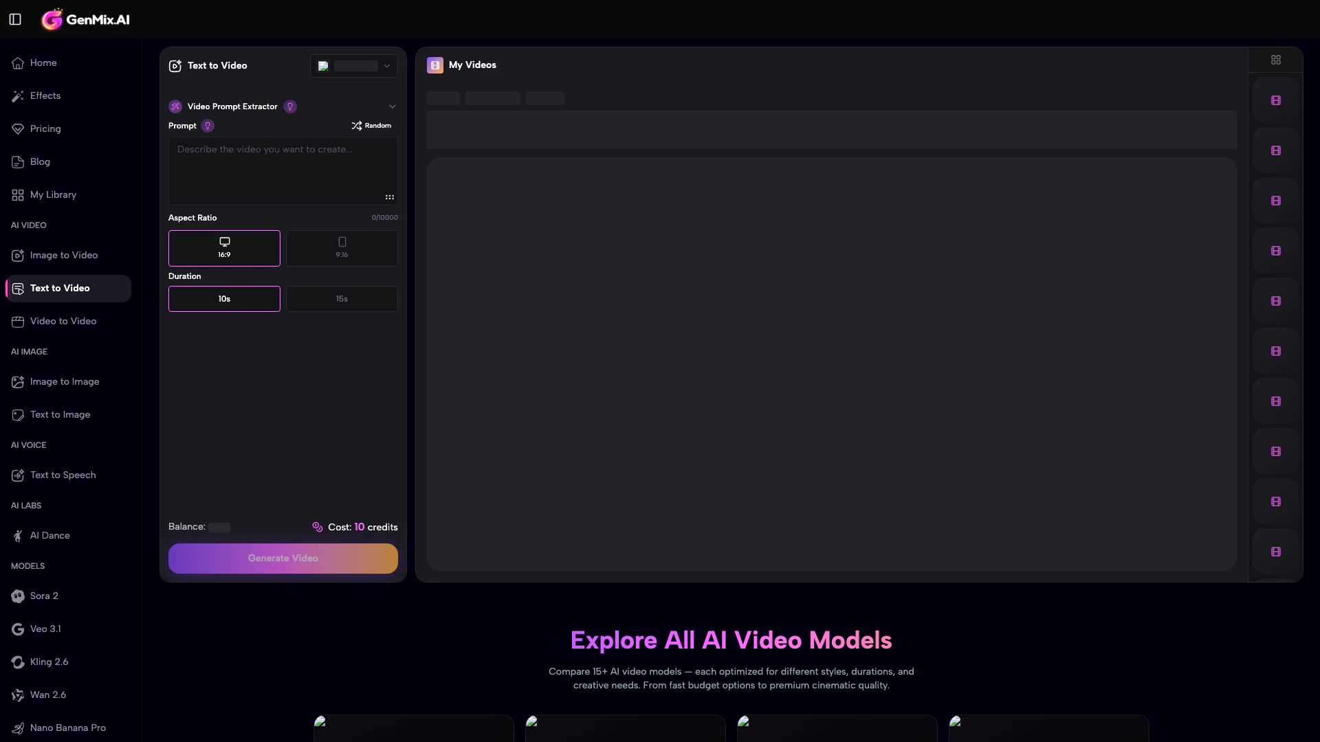 - Múltiples Modelos de IA Disponibles: Genmixai proporciona acceso a más de 15 modelos de IA, incluidos Sora, Veo 3.1 y Kling 2.6, permitiendo a los usuarios elegir el mejor modelo para sus necesidades específicas de creación de videos.