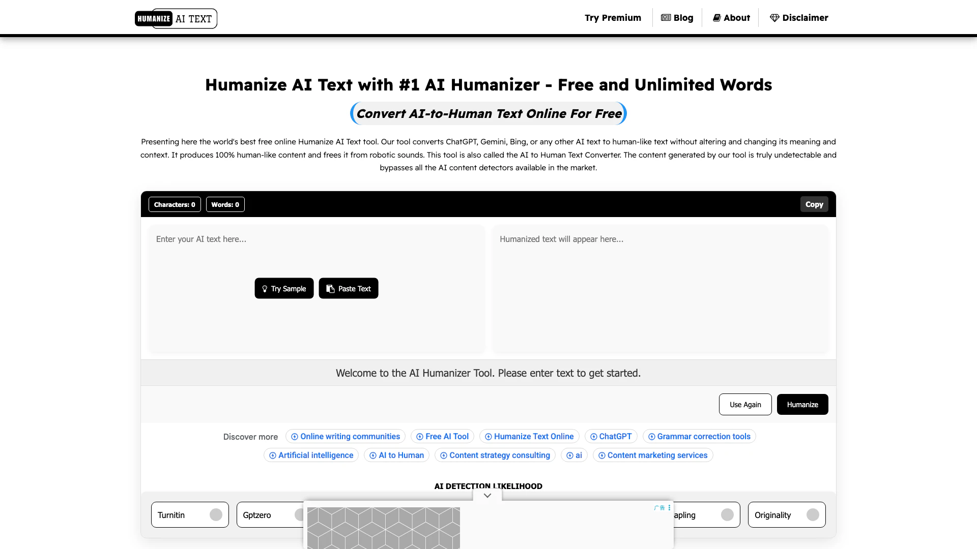 - Evita la detección de IA: Utiliza algoritmos avanzados para garantizar que el texto convertido no sea detectable por detectores de contenido de IA, manteniendo su calidad similar a la humana.