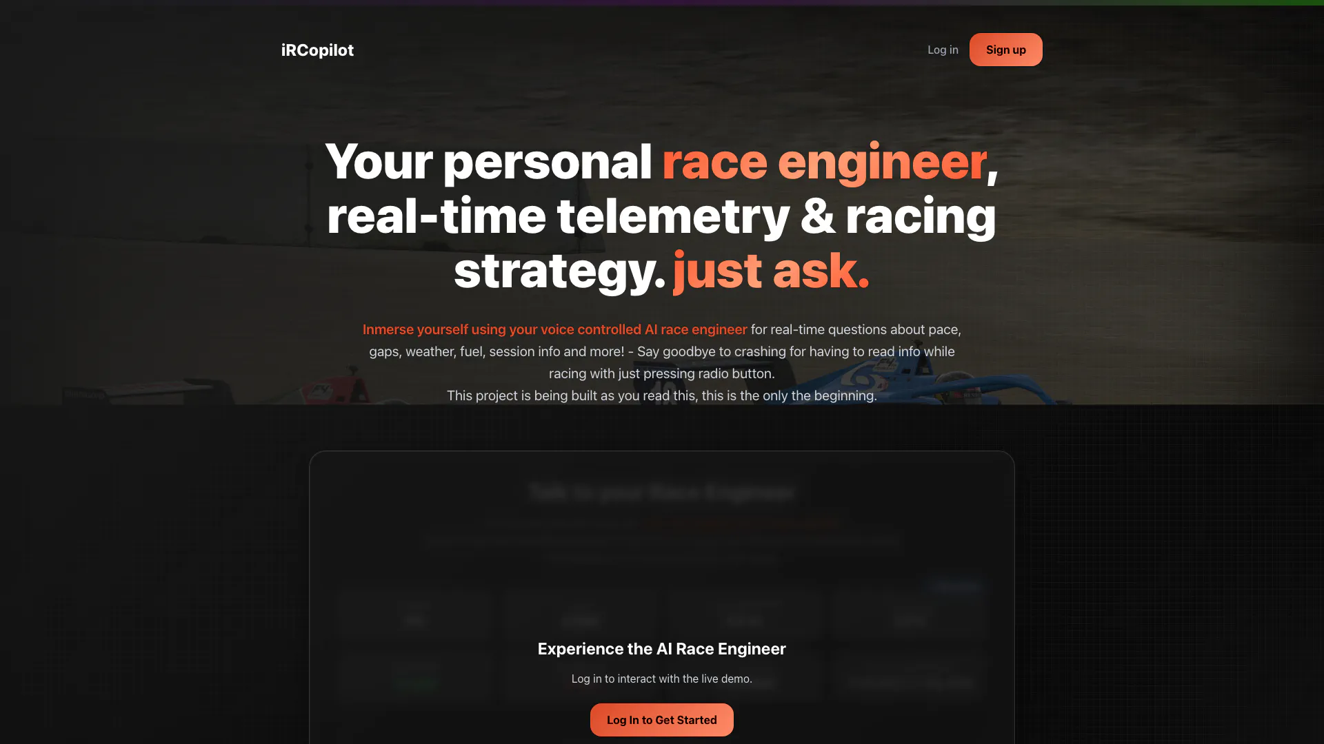 Ircopilot es tu ingeniero de carrera personal que proporciona telemetría en tiempo real y estrategia de carrera.