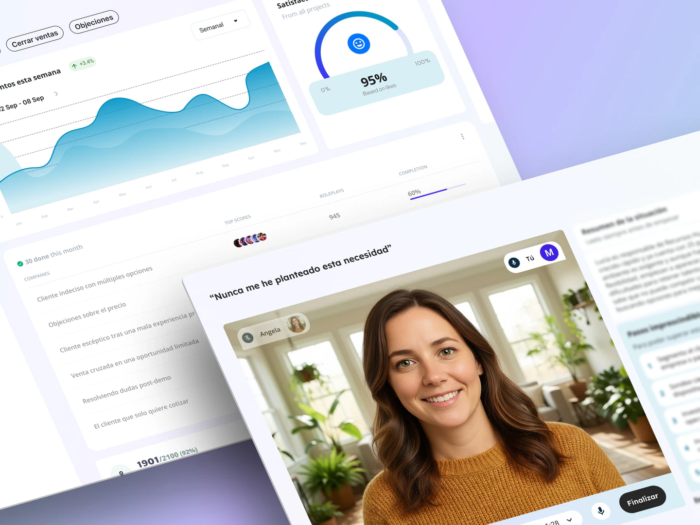 - Juegos de roles realistas impulsados por IA que simulan conversaciones de ventas reales.