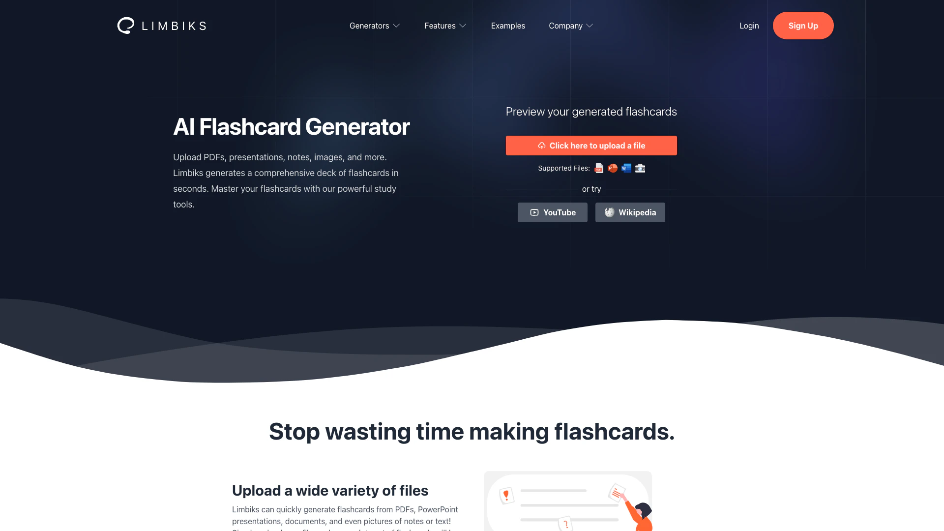 - Generación Rápida de Tarjetas de Estudio: Limbiks permite a los usuarios cargar varios tipos de archivos y genera tarjetas de estudio completas en segundos, mejorando la eficiencia del estudio.