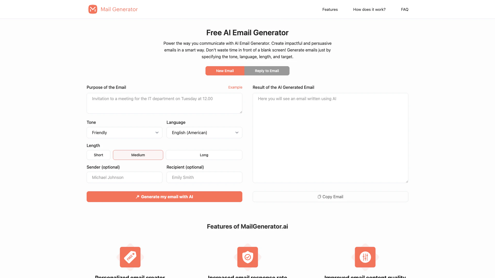 - Interfaz Amigable para el Usuario: El diseño intuitivo permite a los usuarios generar correos electrónicos rápidamente sin necesidad de habilidades técnicas avanzadas, haciéndolo accesible para todos.