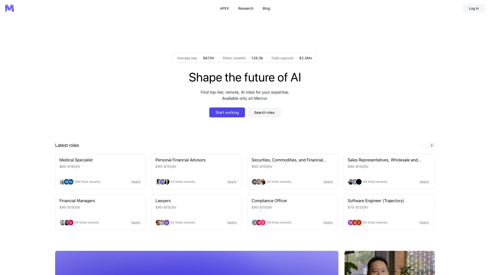 - Tarifas de pago competitivas: Mercor ofrece tarifas horarias competitivas para varios roles de IA, asegurando que los profesionales sean bien compensados por sus habilidades.