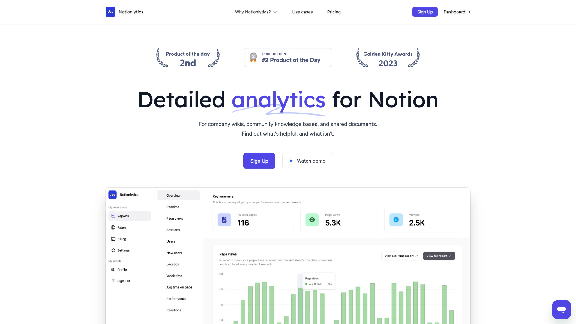 - Análisis en Tiempo Real: Notionlytics proporciona análisis en tiempo real, permitiendo a los usuarios monitorear el uso del contenido a medida que ocurre, asegurando ajustes oportunos para mejorar la relevancia.