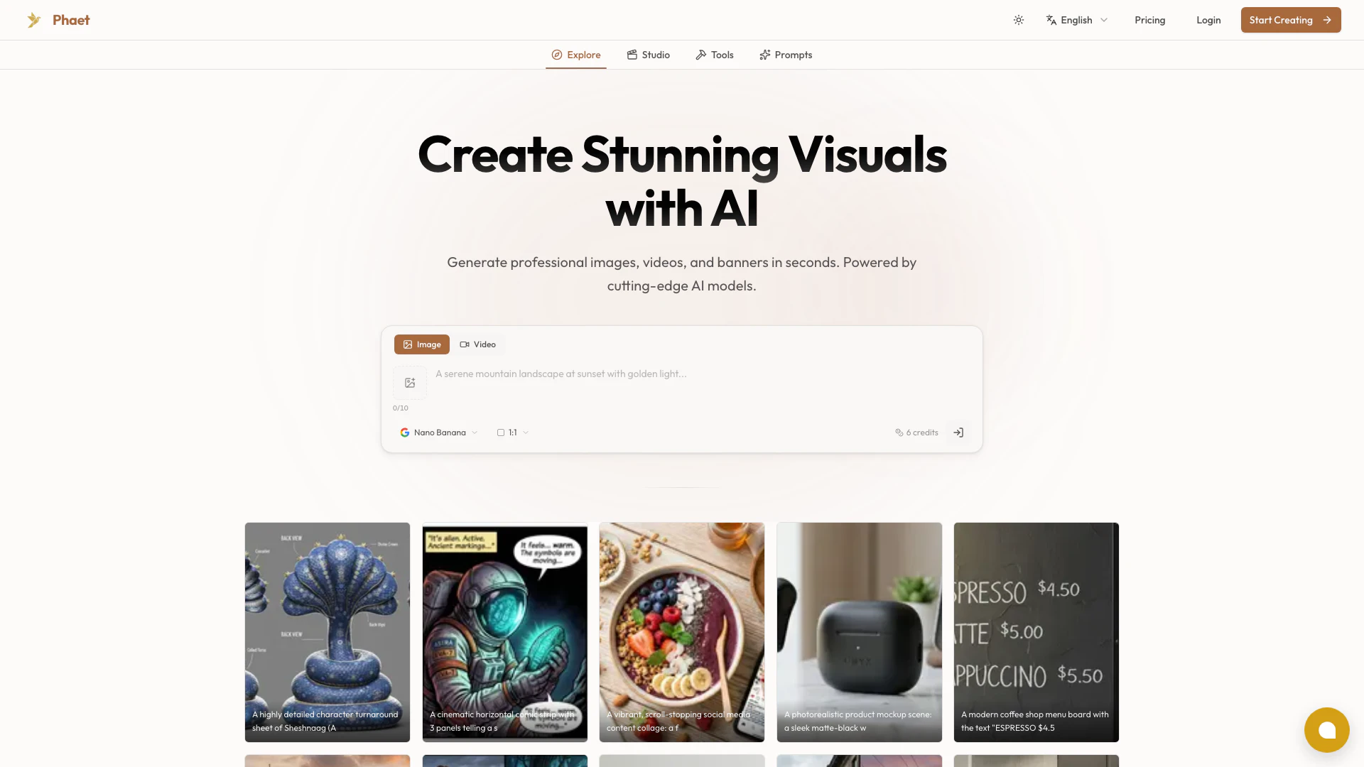 - Creación de Imágenes y Videos Impulsada por IA: Phaet utiliza modelos avanzados de IA para generar imágenes y videos profesionales rápidamente, mejorando los flujos de trabajo creativos.