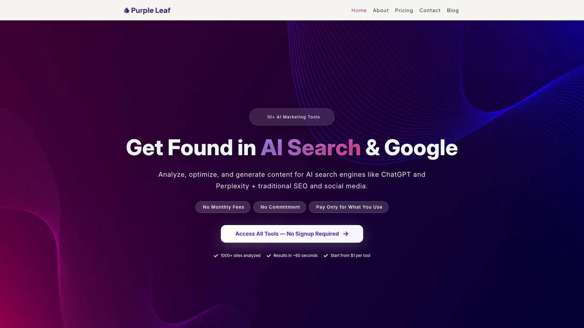 - Visita el sitio web de Purple Leaf y selecciona la herramienta de IA que deseas utilizar.