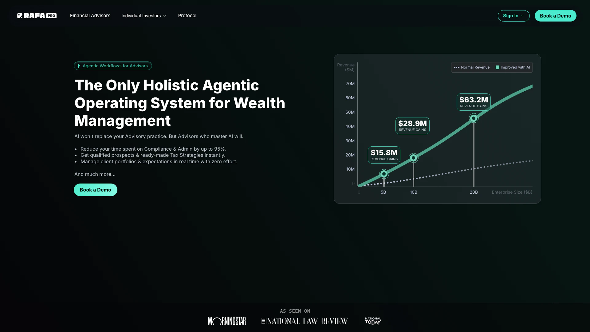 Rafaai es una plataforma de vanguardia impulsada por IA, diseñada específicamente para asesores de gestión de patrimonio. Sirve como un Sistema Operativo Agente integral, permitiendo a los profesionales financieros optimizar sus flujos de trabajo, mejorar las interacciones con los clientes y reducir significativamente el tiempo dedicado a tareas de cumplimiento y administrativas. Al aprovechar las capacidades avanzadas de IA, Rafaai empodera a los asesores para que se concentren en lo que realmente importa: hacer crecer su negocio y proporcionar un servicio excepcional al cliente. Este sistema inteligente no solo automatiza tareas rutinarias, sino que también ofrece información personalizada, permitiendo a los asesores gestionar carteras de clientes y expectativas sin esfuerzo.